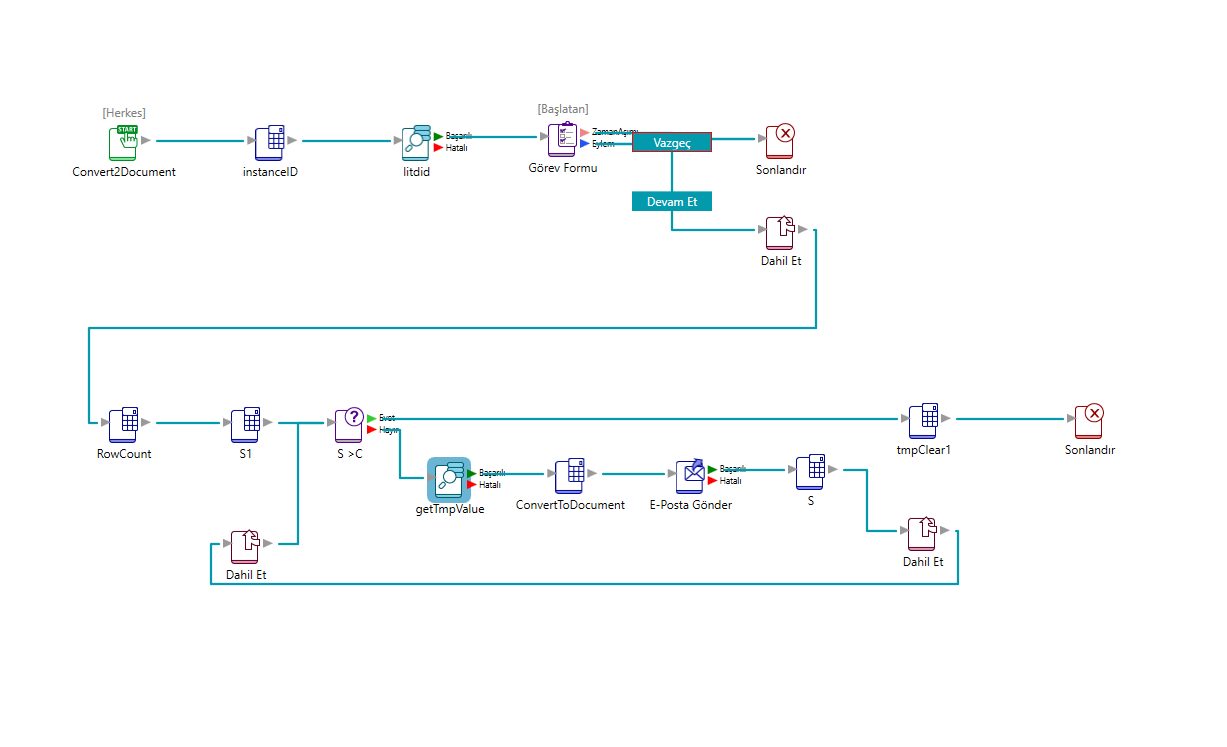 Burayı tıklayarak örnek süreci indirebilirsiniz. Bu süreç E-Flow 3.05 ve 3.06 da test edilmiştir. 🚀